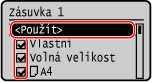 Velikosti papíru, jejichž políčka nejsou zaškrtnutá, se na obrazovce nastavení papíru nezobrazí.