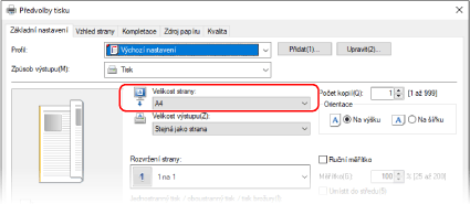 Zaškrtněte políčko [Přizpůsobit velikosti papíru] a v položce [Cílová velikost papíru] vyberte velikost papíru, na který se má tisknout.