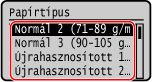 Ha gyakran kell módosítania a betöltendő papírt, válassza a [Tetszőleges] lehetőséget; ez csökkenti a beállítás módosításához szükséges lépések számát. Vegye azonban figyelembe, hogy ezzel a beállítással a készülék akkor is nyomtathat, ha a nyomtató-illesztőprogramban megadott papírtípus-beállítás nem egyezik a készülékbe ténylegesen betöltött papír típusával.