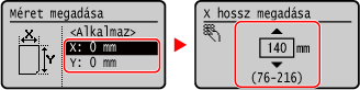 Ha gyakran használ egy bizonyos nem szabványos méretű papírt, akkor érdemes lehet bejegyeznie az adott méretet. A papírt így egyszerűen kiválaszthatja a méret megadására szolgáló képernyőn anélkül, hogy minden alkalommal meg kellene adnia a méretet.