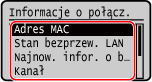 Wyświetlanie adresu MAC i informacji o połączeniu z bezprzewodową siecią LAN