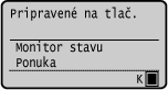 Táto obrazovka sa zobrazí ihneď po zapnutí napájania a zatvorení úvodnej obrazovky.