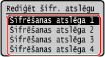 .Šifrēšanas atslēga tiek reģistrēta ekrānam [Šifrēšanas atslēga].