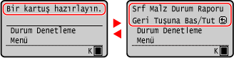 öğelerine bastığınızda bu ekran görüntülenir. Makine bilgilerini, kullanımı ve günlükleri, ağ ayarlarını ve hata bilgilerini kontrol etmek için bu ekranı kullanın. [Durum Denetleme] Ekranı
