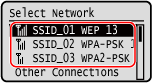 כדי לציין שיטת אימות או הצפנה אחרת, השתמש בשיטת ההגדרה הידנית כדי להתחבר. חיבור לרשת LAN אלחוטית על ידי הגדרת הפרטים (שיטת הגדרה ידנית)