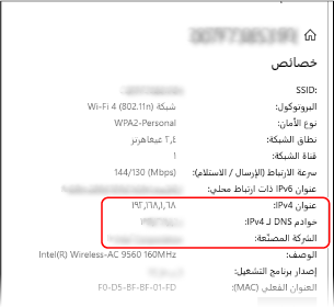 عرض معلومات اتصال الشبكة لجهاز الكمبيوتر