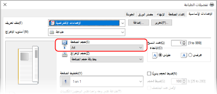 حدد مربع الاختيار [تحجيم لملاءمة حجم الورق]، وفي [حجم ورق الوجهة]، حدد حجم الورق المُراد الطباعة عليه.