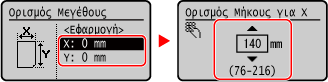 Μπορείτε να καταχωρίσετε τα μεγέθη, όταν χρησιμοποιείτε συχνά συγκεκριμένο χαρτί μη τυπικού μεγέθους. Μπορείτε να καλέσετε το χαρτί στην οθόνη εισαγωγής μεγέθους, αποφεύγοντας έτσι τη φασαρία να εισαγάγετε το μέγεθος.
