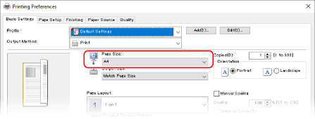 Στην περιοχή [Page Size] της καρτέλας [Basic Settings], επιλέξτε το μέγεθος χαρτιού του εγγράφου.