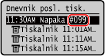 Če tiskanja ni mogoče izvesti ali če pride do druge napake, je v dnevniku opravil prikazana koda napake (trimestno število, ki se začne z »#«).