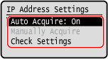 5 | Select [Manually Acquire] and press .The IP address input screen is displayed. |