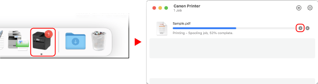 คลิกไอคอนเครื่องพิมพ์ในแท่นเชื่อมต่อ เลือกเอกสารที่จะยกเลิก แล้วคลิก [