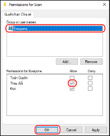 1 | Trong [Group or user names], chọn [Everyone]. |