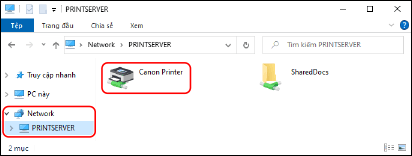 Trong [Network], chọn máy chủ in để hiển thị máy in dùng chung.