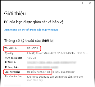 Trong [Thông số kỹ thuật của thiết bị], xem tên máy tính và phiên bản hệ điều hành.