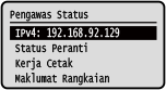 pada skrin [Rumah] dan lokasi lain. Gunakan skrin ini untuk memeriksa maklumat mesin, penggunaan dan log, tetapan rangkaian, dan maklumat ralat. Skrin [Pengawas Status]