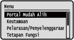 Menukar Paparan SkrinAnda boleh menukar paparan panel operasi seperti menukar bahasa dan unit paparan, serta menunjukkan atau menyembunyikan mesej. [Tetapan Paparan] Anda boleh menyongsangkan warna skrin dan melaraskan kontras untuk membuatkan skrin lebih mudah dilihat. [Kebolehcapaian] Mengosongkan Tetapan Secara AutomatikSecara lalai, jika tiada operasi dijalankan selepas tempoh masa tertentu, tetapan yang dikonfigurasi pada skrin akan dikosongkan, dan skrin [Rumah] dipaparkan. Anda boleh menukar masa hingga tetapan ini dikosongkan. [Masa Set Semula Auto] |