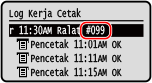 Jika pencetakan tidak dapat dilakukan atau ralat lain berlaku, kod ralat (nombor tiga digit bermula dengan "#") dipaparkan dalam log kerja.