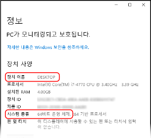 [장치 사양]에서 컴퓨터 이름과 운영 체제 버전을 봅니다.