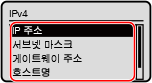 IPv4 주소 및 IPv6 주소와 같이 기기에 설정된 IP 주소의 설정을 볼 수 있습니다.