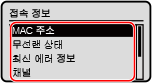 [시스템상황] 화면을 사용하여 정보 보기다음 절차를 사용하여 무선 LAN 상태와 오류 정보도 볼 수 있습니다. |