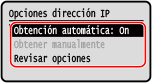 Por lo general, debe configurar esta opción como [On]. Aunque se da prioridad a la dirección IP asignada con DHCP, si no se obtiene respuesta de DHCP, se usará la IP automática.