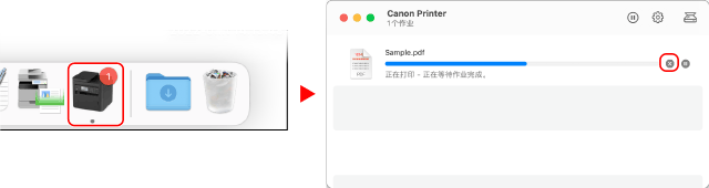 单击 Dock 中的打印机图标,选择要取消的文件,然后单击 [