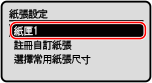 如果經常需要更換裝入的紙張,請設定為 [任意尺寸];這將減少每次變更設定所需的步驟數。不過請注意,即使印表機驅動程式中的紙張類型設定與本機中實際裝入的紙張類型不相符,此設定也會允許本機執行列印。