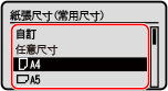 橫向裝入紙張時,選擇 [A5]。縱向裝入紙張時,選擇 [A5R]。
