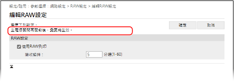 [設定/註冊] 按一下此項可顯示 [設定/註冊] 畫面。 如果您以系統管理員模式登入,可以變更任何設定並執行儲存和匯入資料等操作。 可在 [設定/註冊] 畫面中設定的項目與操作面板中的項目幾乎相同,不過某些項目只能藉由操作面板或遠端使用者介面進行設定。 設定功能表項目視項目而定,您可能需要重新啟動本機才能應用設定。如果需要重新啟動,畫面頂端會出現訊息。 |