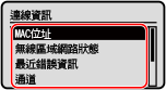使用 [狀態確認] 畫面檢視資訊您也可以透過下列程序檢視無線區域網路狀態和錯誤資訊: |