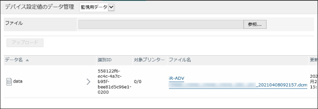 [デバイス設定値のデータ管理]ページのリストで、デバイス設定値データの[対象プリンター]をクリックします。