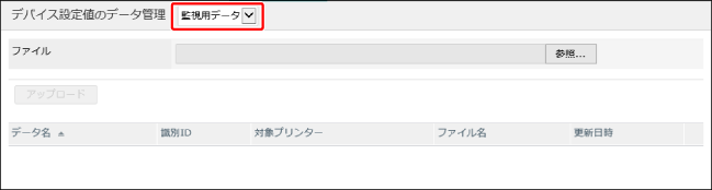 [デバイス設定値のデータ管理]ページの上部にあるドロップダウンリストから、[監視用データ]を選択します。