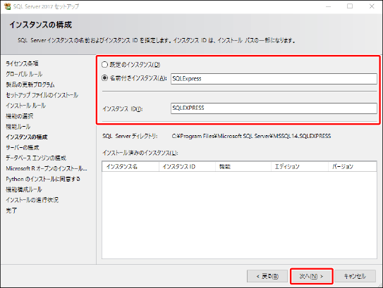 ここでは、SQL Server 2017 Expressの手順を説明します。