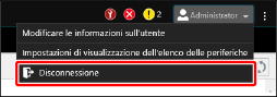 Selezionare [Disconnessione] dal menu delle informazioni dell'utente nella parte superiore dello schermo.