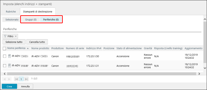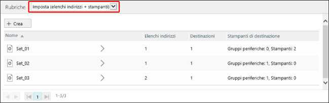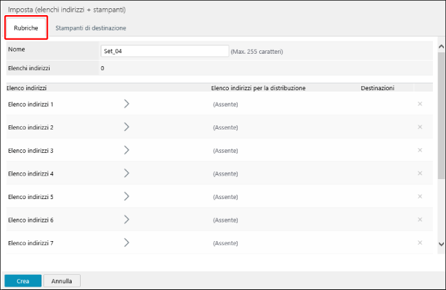 [Elenco indirizzi per la distribuzione] | Mostra i nomi delle selezioni veloci e degli elenchi indirizzi creati in questo software e associati alle selezioni veloci e agli elenchi indirizzi nella stampante. |