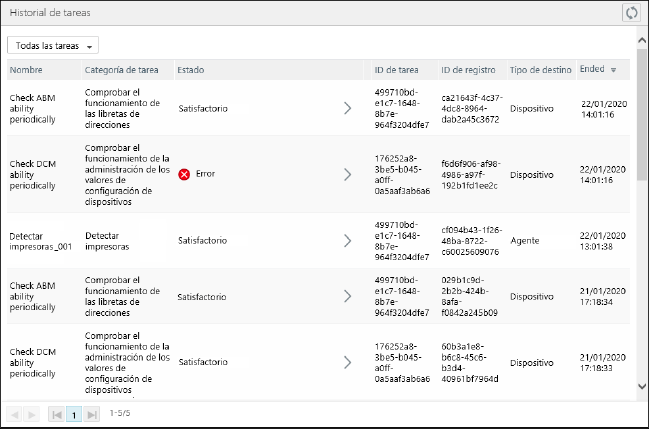 Para consultar el estado de ejecución o las tareas completadas, seleccione el menú [Tareas] > [Historial].