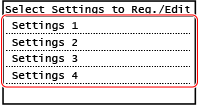 Press [Regist./Edit] and select an item in which settings are not registered.