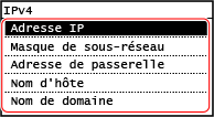 Vous pouvez visualiser le paramétrage de l’adresse IP définie pour la machine, comme l’adresse IPv4 et l’adresse IPv6.