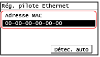 Vous pouvez visualiser l’adresse MAC définie pour la machine lorsque celle-ci est connectée au réseau local câblé.