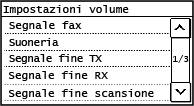 È possibie regolare il volume dei seguenti suoni di notifica: all'invio di un fax, alla ricezione di un fax, al completamento dell'invio di un fax, al completamento della ricezione di un fax o al completamento della scansione degli originali di un fax.
