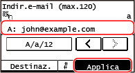 Usare [Specifica da rubrica] oppure [Specifica da selezione codificata] per specificare le destinazioni Cc e Ccn.