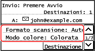 Se la destinazione per l'invio è limitata per via delle impostazioni di autenticazione della funzione Invio, non è consentito specificare un'altra destinazione. Per dettagli, contattare l'amministratore.