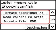 Se la destinazione per l'invio è limitata per via delle impostazioni di autenticazione della funzione Invio, non è consentito specificare un'altra destinazione. Per dettagli, contattare l'amministratore.