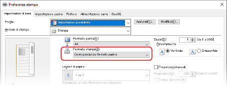 Far corrispondere [Formato stampa] nel driver della stampante con il formato di carta su cui stampare.