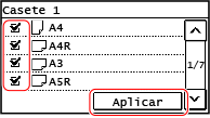 Los tamaños de papel cuyas casillas estén desmarcadas no aparecen en la pantalla de configuración del papel.