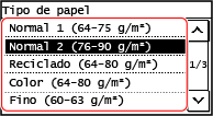 Puede cambiar el tamaño de papel que aparece en pantalla en el paso 1. Ocultar tamaños de papel que no se usan |