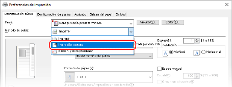 Impresión de un documento protegido con un PIN (Impresión segura)