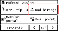 Na upravljačkoj ploči pritisnite [Kodirano biranje] na zaslonu [Početni zaslon].