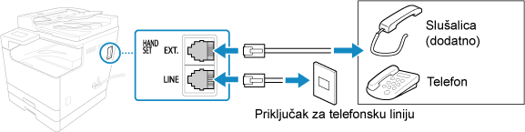 Priključite priloženi telefonski kabel u utičnicu za telefonsku liniju na uređaju (LINE) i u zidnu utičnicu za telefonsku liniju.